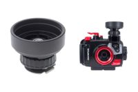 「レンズホルダーシューベース」をハウジングに直接付けることで、水中でも手元でスムーズにレンズ交換が可能になり、マクロ、ワイドの切り替えもすばやく行えます。