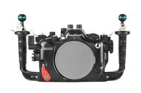 豊富なN100ポートシステム ワイドからマクロ撮影まで対応するポート群に加え、ワイド/マクロコンバージョンレンズを装着することで、あらゆる撮影シーンに対応します。 ミッションコントロール コントロールは直感的に配置され、操作ボタン/レバーを右手側に集約させました。また、ハウジングの上部にある新しい専用レバーにより、静止画、動画、S&Q(VFRビデオ)モードをすばやく切り替えることができます。右ハンドルの近くにあるデュアルサムレバーはRECボタンとAF-ONボタンを操作できるなど、重要なカメラコントロールにすばやくアクセスでき、水中での撮影に集中することができます。 TTLコンバーター対応 外部ストロボとのシンクロは、付属のオプティカルシンクロシステムによりマニュアル発光が可能です。さらに、TTLオート調光に対応したフラッシュトリガー『NA TTLコンバーターSonyFE』にオプション対応。任意の絞り値での撮影や生態シーンの速写性に効果を発揮します。 HDMI2.0対応 HDMI2.0規格をサポートするM24バルクヘッドを備えています。これにより、HDMI2.0経由でレコーディングモニター、またはHDMI1.4経由でモニターと組み合わせて使用できます。 等倍ビューファインダー オプションの『NAスーパービューファインダー180II』および『NAスーパービューファインダー45II』にユーザーご自身で簡単に換装することができます。 オプション 材質 耐腐食アルミ合金、耐摩擦性ポリカーボネート 耐圧水深 100m サイズ W340×H170×D125mm 重量 2700g ポートサイズ N100 付属品 ダイレクトベースX2、スペアOリング、Oリングリムーバー、Oリンググリス、CR2032電池、六角レンチセット、ボディキャップ、キャリングバッグ グリップをS4FG(4本指グリップ)にする場合は、グリップが操作部と干渉するため、別途『#20237 NA グリップスペーサーセット』の取り付けが必要となります。スペーサーを取り付けることで、ハウジングとグリップの間隔は10mm延長され、3FGグリップと同じ距離になります。 仕様は予告なく変更する場合があります。予めご了承ください。 オプション N100ポート バキュームバルブ スーパービューファインダー180II スーパービューファインダー45II TTLコンバーター ユニバーサルOPファイバー レッグマウントボールセットA WWL-1 SMC-1 フリップレンズアダプター