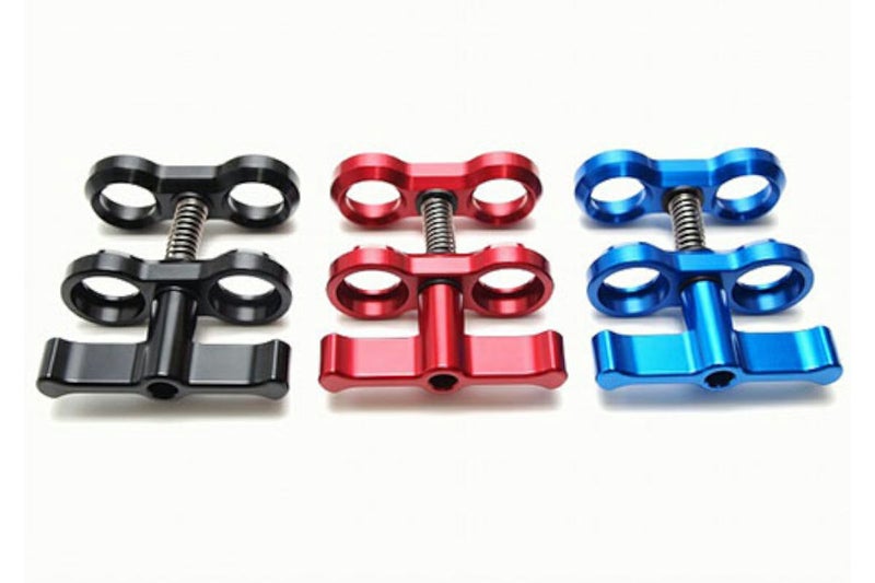 ボルトにテフロン加工を施した、錆びにくいアルミ削り出しのクランプです。