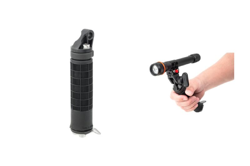 LEDライトやストロボ、GoProと組み合わせて使用します。 先端形状YSタイプの、アルミ合金製、高剛性で握りやすいハンドグリップ。 先端のYSタイプパーツを取り外すと、『D5ホルダー』同様、様々なイノンアーム製品が取り付けられます。 底部にはマルチダイレクトベースII類が取り付けられます。 別売オプション、「クイックベースS」を組み合わせることで、LEDライト、ストロボ、GoProなどを、カメラシステムから瞬時に付け替えができます。 サイドライトやバックライト撮影などのライティングの自由度の向上、GoProの手持ち撮影など、汎用性が大幅にアップ。 仕様 寸法 W32 x H162.6 x D51.7 mm 本体重量 131g (陸上) / 約65g (水中) 本体材質 / 表面処理 耐蝕アルミ合金 / 硬質アルマイト、POM等