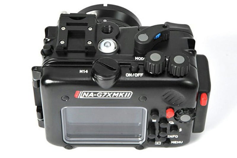 ポート交換システム 標準装備のフラットポートをアクリル製ドームポートやM67マウントのワイドポートに交換することで、撮影のバリエーションが広がります。 NA C90ドームポート(左上) 標準ポートでのワイド端水中画角(約31mm)を、陸上と同じ画角(24mm)に補正します NA CワイドポートM67(右下) 『NA WWL-1』などの各種ワイドコンバージョンレンズを取り付けることができます バキュームリークセンサー ハウジング内部の空気を陰圧にすることで、陸上でシール状態がチェックできる『バキュームリークセンサー』の圧力センサーを標準装備。オプションの『バキュームバルブ』の追加のみでフルシステムを組むことができます。 シャッターレリーズトリガー 「押し下げる」シャッターレバーを「引く」動作へ変換するオプションパーツを同梱。絶妙なフィーリングを提供し、動画撮影時の撮影にも威力を発揮します。 ※装着・使用には以下の別売オプションが必要です NAマルチトレーシステムダブル/NAマルチトレーダイレクトベース×2 LCDルーペファインダー LDCモニターを遮光・拡大してフレーミングやピント合わせに役立つ『LCDルーペファインダー』が装着可能。撮影の楽しさが格段にアップします。 オプション 材質 耐腐食アルミ合金、耐摩擦性ポリカーボネート 耐圧水深 100m サイズ W150 × H103 × D110mm 重量 900g ポートサイズ N50 ストロボ接続 光ファイバー接続パネル 付属品 CスタンダードポートM67、シャッターレリーズトリガー、ハンドル固定プレート、光ファイバーアダプター、光ファイバーコネクターキャップX2、スペアOリング、Oリングリムーバー、Oリンググリス、CR2032電池、六角レンチセット、キャリングバッグ 仕様は予告なく変更する場合があります。予めご了承ください。 オプション N50ポート バキュームバルブ ルーペファインダー ユニバーサルOPファイバー マルチトレーシステム マルチトレーダイレクトベース WWL-C WWL-1 CMC-1 フリップレンズアダプター
