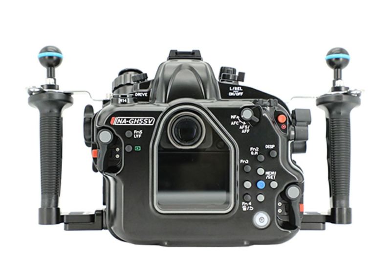 選べるストロボ発光パターン 外部ストロボとの接続は「TTL調光」と「連写可能なマニュアル発光」を選択できます。いずれもオプションのストロボ/トリガーが必要です。 【TTL調光】Panasonic DMW-FL70(左上) カメラ側の設定でマニュアル発光も可能です。オープン価格 【マニュアル発光】NA ミニマニュアルフラッシュトリガーGH5(右下) 連写回数はストロボの設定と撮影環境によって変わります。税込\31,680 前傾グリップ装備 ベーストレー、グリップ、ブラケット、ボールジョイントベースを標準装備。安定した自然な姿勢で動画撮影ができるよう左右のグリップを前傾させてあります。 等倍ビューファインダーに換装可能 オプションの『NAスーパービューファインダー180IIM』および『NAスーパービューファインダー45IIM』に対応。ユーザーご自身で簡単に換装できます。 ホワイトバランス/ISOコントロール ホワイトバランスとISOの両方にアクセスできるコンボレバーは右手グリップの下に配置されています。動画撮影の要となるこの2つの設定コントロールをグリップから手を離すことなく右手親指で素早く操作できます。 本格的な動画撮影に対応 4K/60p対応の高画質ムービー撮影をサポートするためのオプションを用意。 写真のハウジング下部3カ所のボールジョイントは『NAレッグマウントボールセットG』です。 HDMI 2.0対応 4K/60P 4:2:2 10bitのHDMI出力に対応したM28サイズの大型アクセサリーポートを装備。高ビットレートで『NA Ninja V』などの外部レコーダーに収録できます。 ※旧製品『NA GH5』から『NA GH5SV』への改造を承ることはできません。 オプション 材質 耐腐食アルミ合金、耐摩擦性ポリカーボネート 耐圧水深 100m サイズ W331×H192×D124mm 重量 2520g ポートサイズ N85 ストロボ接続* 光ファイバー接続パネル 付属品 ダイレクトベースX2、スペアOリング、Oリングリムーバー、Oリンググリス、CR2450電池、六角レンチセット、ボディキャップ、キャリングバッグ、光ファイバーアダプター穴キャップx2 外部ストロボとの同調にはオプションの『NAミニマニュアルフラッシュトリガーGH5』またはパナソニック純正「DMW-FL70」が必要です 仕様は予告なく変更する場合があります。予めご了承ください。 専用ギアについて 本機にて「Olympus M.ZUIKO DIGITAL ED 12-50mm F3.5-6.3 EZ」ズームレンズを『NA EO1250フラットポート』と組み合わせて使用される場合は、 ・専用のズームギア『NA-O1250PG-Z』 ・従来のズームギア『NA-O1250P-Z』+別売の換装部品『NA-O1250PGZギアパーツ』 のいずれかが必須となります。 ■NA-O1250PZギアパーツ 上記、専用ズームギア『NA-O1250PG-Z』を他機NAハウジングで使用される場合は、 ・別売の換装部品『NA-O1250PZギアパーツ』が必須となります。 本機にて「Panasonic LUMIX G X VARIO PZ 14-42mm F3.5-5.6 ASPH. POWER O.I.S.」レンズを使用される場合は、 ・専用のズームギア『NA-P1442XG-PZ』が必須となります。他機NAハウジングで使用するための換装部品はありません。 いずれも製品名称がよく似ていますので、お求めの際はお間違いのないようご注意願います。 オプション N85ポート バキュームバルブ スーパービューファインダー180IIM スーパービューファインダー45IIM Ninja V フラッシュトリガーGH5 ユニバーサルOPファイバー レッグマウントボールセットG WWL-1 CMC-1
