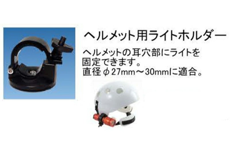 ヘルメットの耳穴部にライトを固定できます