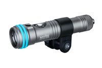コンパクト&シンプル操作 最大光量1000ルーメンのワイド光と、光に敏感な生物の撮影に役立つレッド光を搭載。電源 ボタンのみでワイド100% ⇒ ワイド50% ⇒ ワイド25% ⇒ レッド100% ⇒ レッド50% ⇒ 0%の調光が可能です。 EFモード搭載 カメラの内蔵フラッシュ光やLED光に連動して白色瞬間光を照射するEFモードを搭載。同じくボタン操作のみで2段階の調光が可能です。照射回数※は最大光量で約5000回。 ※照射回数は通常点灯状態の待機時間によって異なります オプション 最大光量 1000ルーメン 水中照射角 60度(ワイド光)/90度(レッド光) 色温度 5500K 最大光量時連続点灯時間 120分(ワイド光)/280分(レッド光) 陸上点灯可否 可 陸上点灯可否 可 充電時間 4時間 付属バッテリー容量 3400mAh 本体材質 耐腐食アルミ合金 耐圧水深 100m サイズ φ33×L141mm 重量 200g(陸上)110g(水中) 付属品 18650 Li-ionバッテリー、バッテリーチャージャー、USB ACアダプター、USBケーブルI、YSアダプター、ボディOリングセット(レッド・パープル)、スペアOリング、Oリングリムーバー、Oリンググリス、リストランヤード、キャリングバッグ オプション バッテリー チャージャー マルチコアOPケーブル FIXイージーロックシューベース