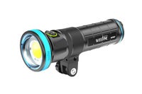 大光量/超ワイド光 最大13000ルーメン、5600K、演色性Ra90の大光量と、ドームレンズによるムラの無い120°の配光は、水中世界を色鮮やかに照らし動画撮影の光源や広範囲のサーチライトに最適です。100⇔80⇔60⇔40⇔20%⇔300ルーメンの6段階の調光が可能。 EFモード搭載 カメラの内蔵フラッシュ光やLED光に連動して瞬間光を照射するEFモードを搭載。大光量を生かした静止画撮影に有効です。100⇔75⇔50⇔10%の4段階の調光が可能。 水冷構造 ライトヘッド部は水が対流することで、大光量の発光による過熱を防ぐデザインになっています。 バキュームシステム ライト本体の浸水リスクを軽減する「バキュームシステム」を標準装備。付属のポンプで内部を陰圧にすることで、事前の防水チェックをより確実なものにします。 リモコン対応 光ファイバー接続によるリモートコントロールにオプション対応。別売の『WFリモートコントローラーWFA03』で多灯ライティングも可能。EFモードと同時に使用することもできます。 仕様 最大光量 13000ルーメン 水中照射角 120度 色温度 5600K 演色性 Ra90 最大光量時連続点灯時間 60分 充電時間 4時間 付属バッテリー容量 6800mAh 本体材質 耐腐食アルミ合金、アクリル樹脂 耐圧水深 100m サイズ φ73×L234mm 重量 1100g(陸上)665g(水中) 付属品 Li-ionバッテリーWF064、SF01チャージャー、バキュームポンプ、ドームレンズカバー、YSベース、ダイレクトベース、ヘッドラバーバンド(パープル/レッド)、スペアOリングセット、バキュームコネクターOリング、Oリングリムーバー、Oリンググリス、バッテリー保護キャップ、六角レンチ、キャリングバッグ、光ファイバ-ケーブル用Oリング オプション WFバッテリー WF SF01チャージャー マルチコアOPケーブル WFリモートコントローラー WFA03